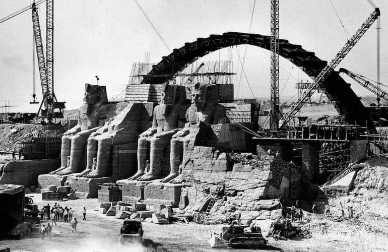 The Abu Simbel Temples are two massive rock-cut temples built by Pharaoh Ramses II in the 13th century BC. They are located near Egypt’s southern border with Sudan. The larger temple is dedicated to the gods Amun, Ra-Horakhty, and Ptah, as well as to Ramses II himself. The smaller temple honors his wife, Queen Nefertari. In the 1960s, the temples were relocated to higher ground to prevent submersion due to the construction of the Aswan High Da