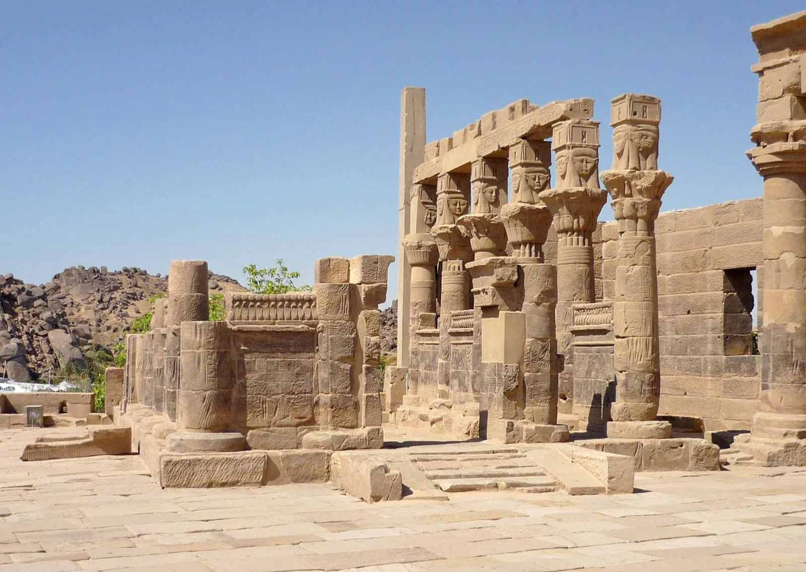 The Philae Temple complex is situated on Agilkia Island in the reservoir of the Aswan Low Dam. Originally located on Philae Island, the temple was moved to its current location to save it from flooding caused by the Aswan High Dam. The main temple is dedicated to the goddess Isis and features a blend of Egyptian and Greco-Roman architecture. The site is renowned for its beautiful setting and historical significance