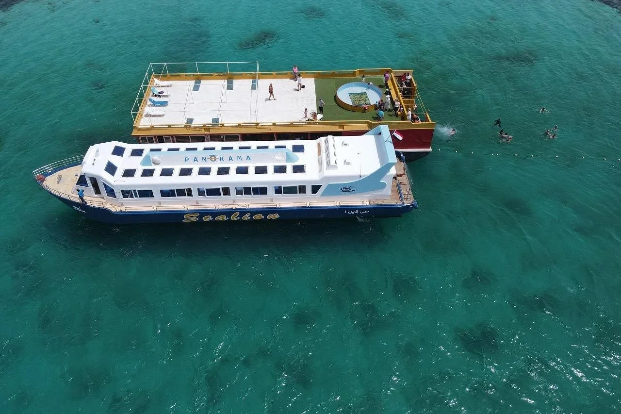 You don’t need to be a professional swimmer to explore the vibrant underwater world of the Red Sea! Hop aboard our modern semi-submarine in Hurghada, designed to take you up to 13 feet (4 meters) below the surface, where you can marvel at the colorful marine life , coral reefs , and crystal-clear waters — all without getting wet!